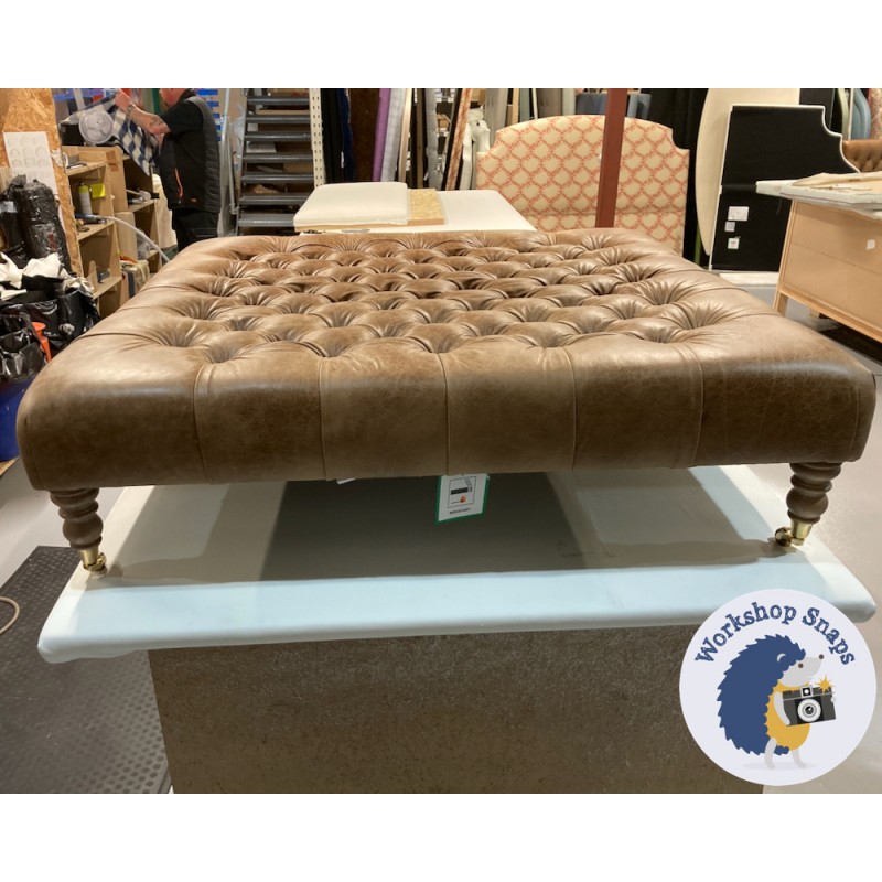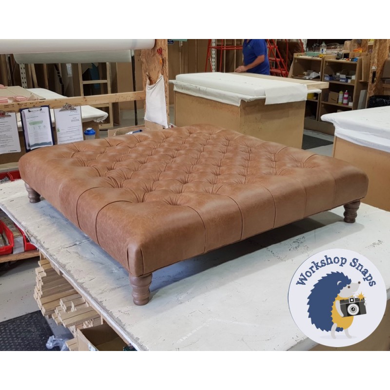Kinver Deep Buttoned Footstool 122 x 122cm (48 x 48") Antique Matt Leather Honey - 7ins Castor Oak Leg 7742