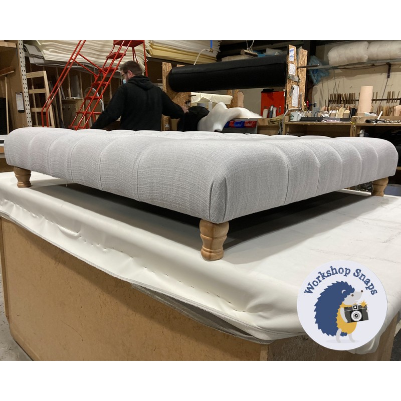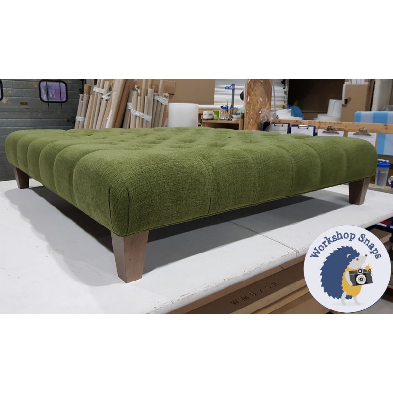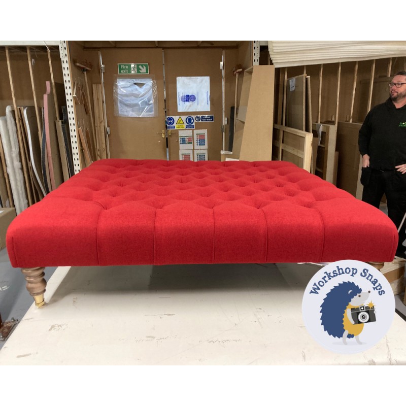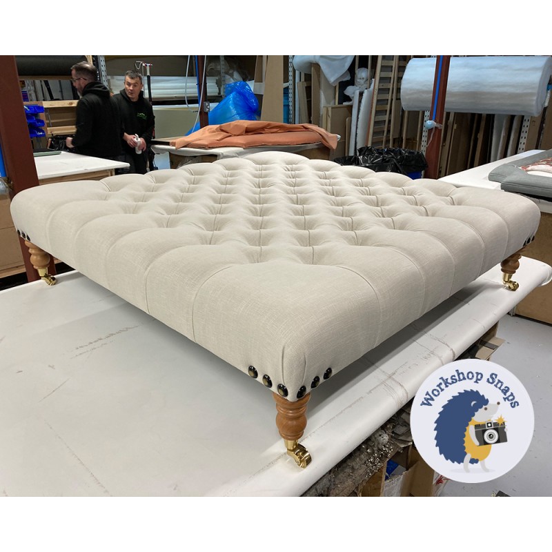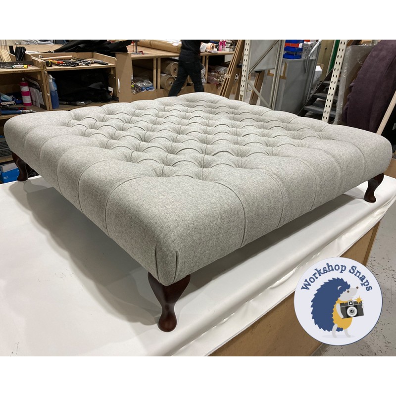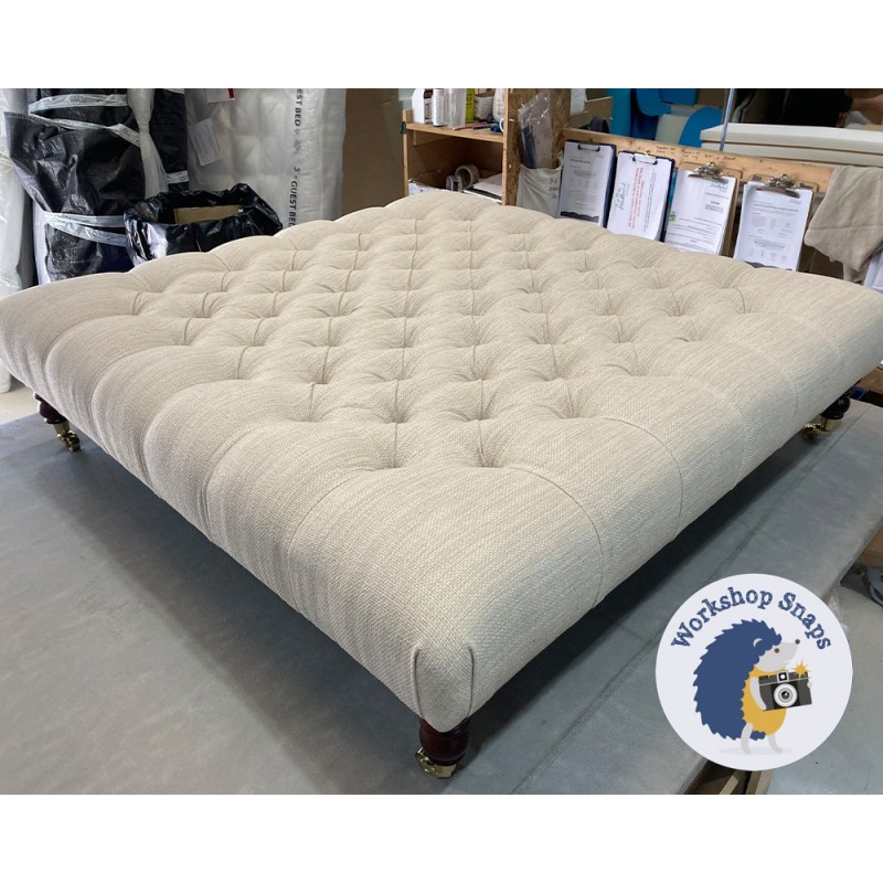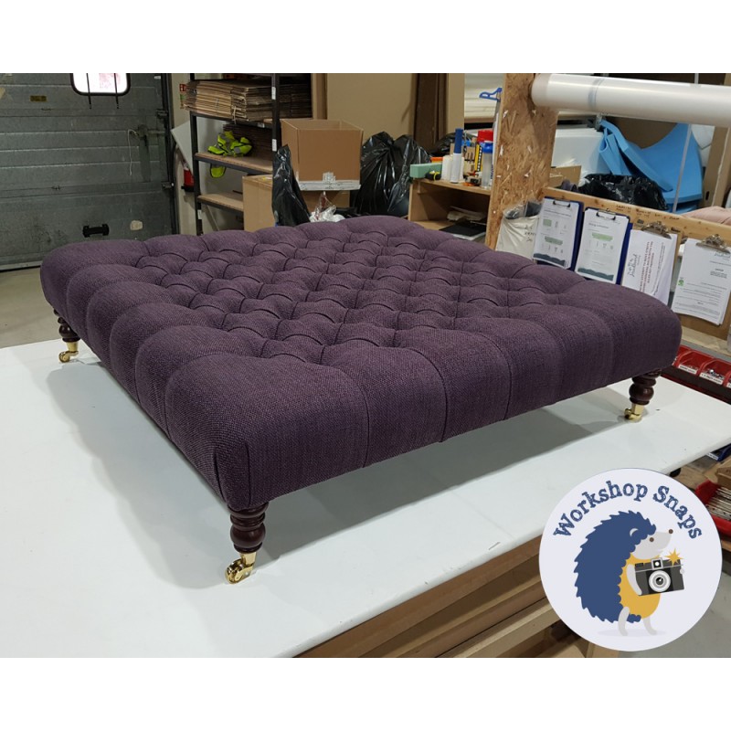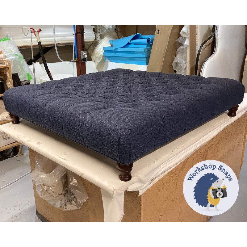 The Kinver Deep Buttoned Ottoman 122 x 122cm (48 x 48") is handmade to order. Begin customising your large square stool by selecting from our wide range of fabrics (or provide your own), and a variety of leg and trim options.