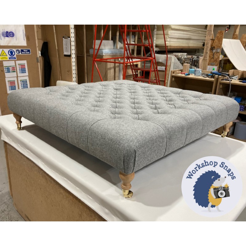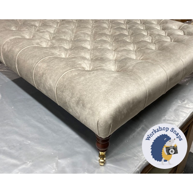 Kinver Deep Buttoned Footstool 122 x 122cm (48 x 48") House Velvet Stone - 7ins Castor Natural Leg 5742