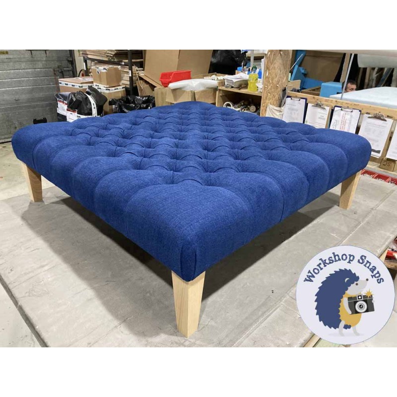 Kinver Deep Buttoned Footstool 122 x 122cm (48 x 48") Soft Weave Sapphire - 9ins Tapered Natural Leg 6011