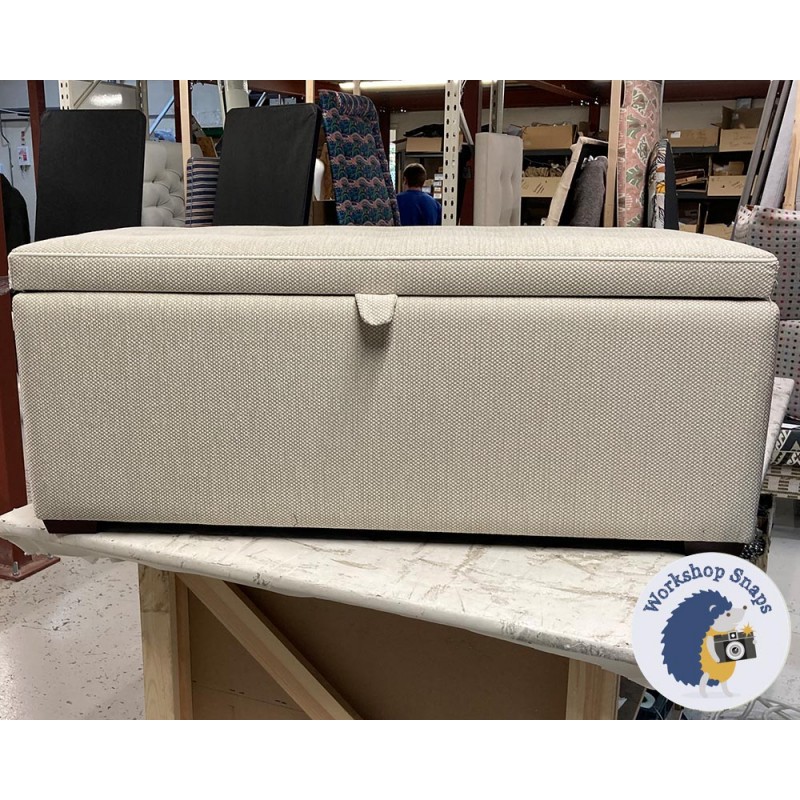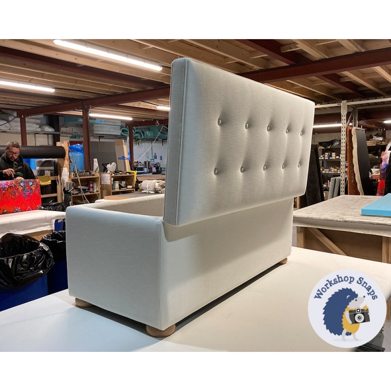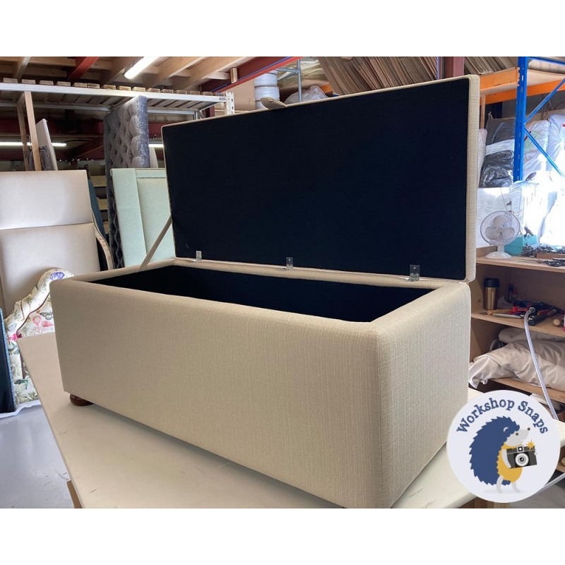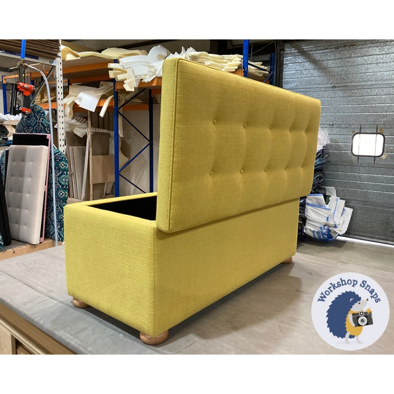 The Sherwood Shallow Buttoned Lid Ottoman 119 x 53cm (47 x 21") is handmade to order. Begin customising your large storage stool by selecting from our wide range of fabrics (or provide your own), and a variety of leg options.