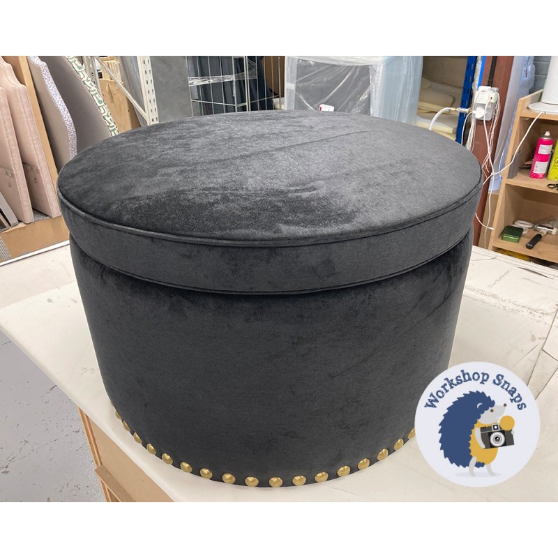 Begin building your medium sized round storage stool by selecting from our wide range of fabrics (or provide your own), and a variety of trim options.