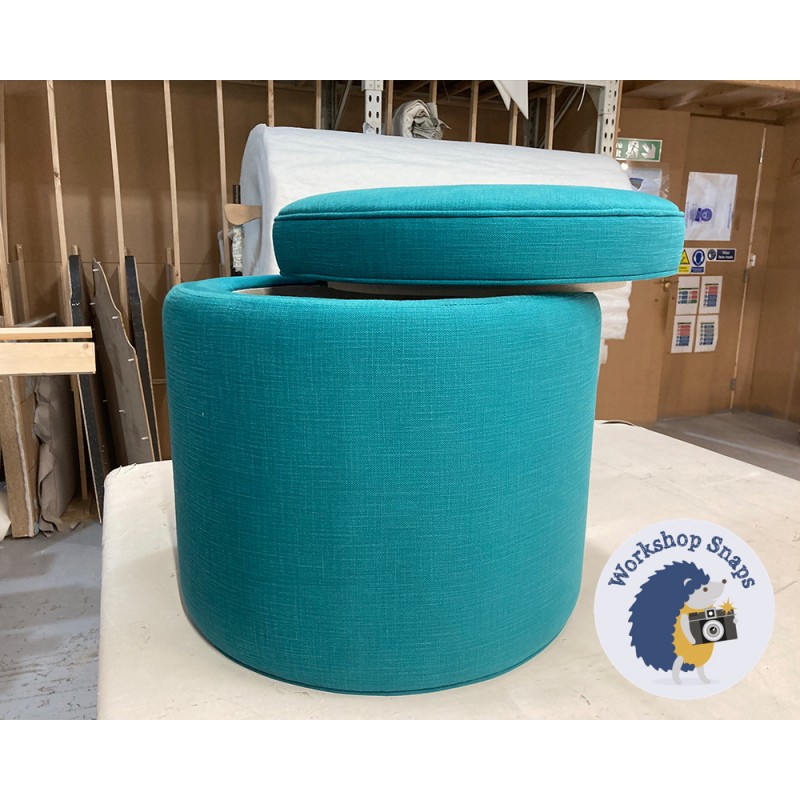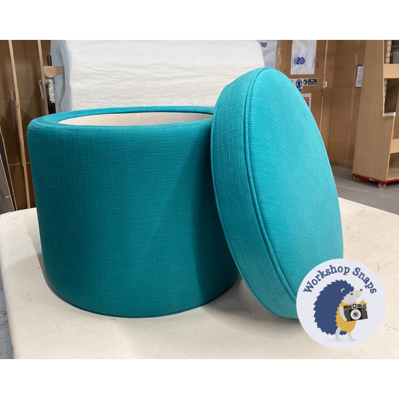 Thetford Plain & Piped Lid Full Depth Round Storage Footstool 51cm (20") JBrown Harbour Teal - Single Piped Trim 9515