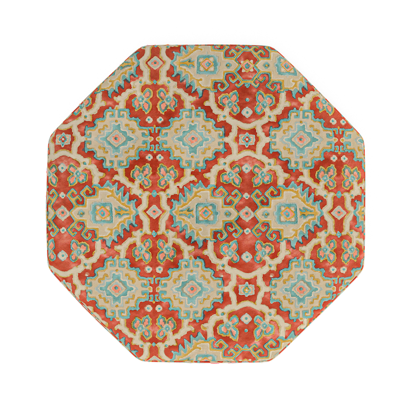 Warmley Octagonal Ottoman 80cm (31.5") in Linwood Kami Chilli - Top Edge Backtacked - 12.7cm (5") Turned Leg Oak - No Trim Cutout