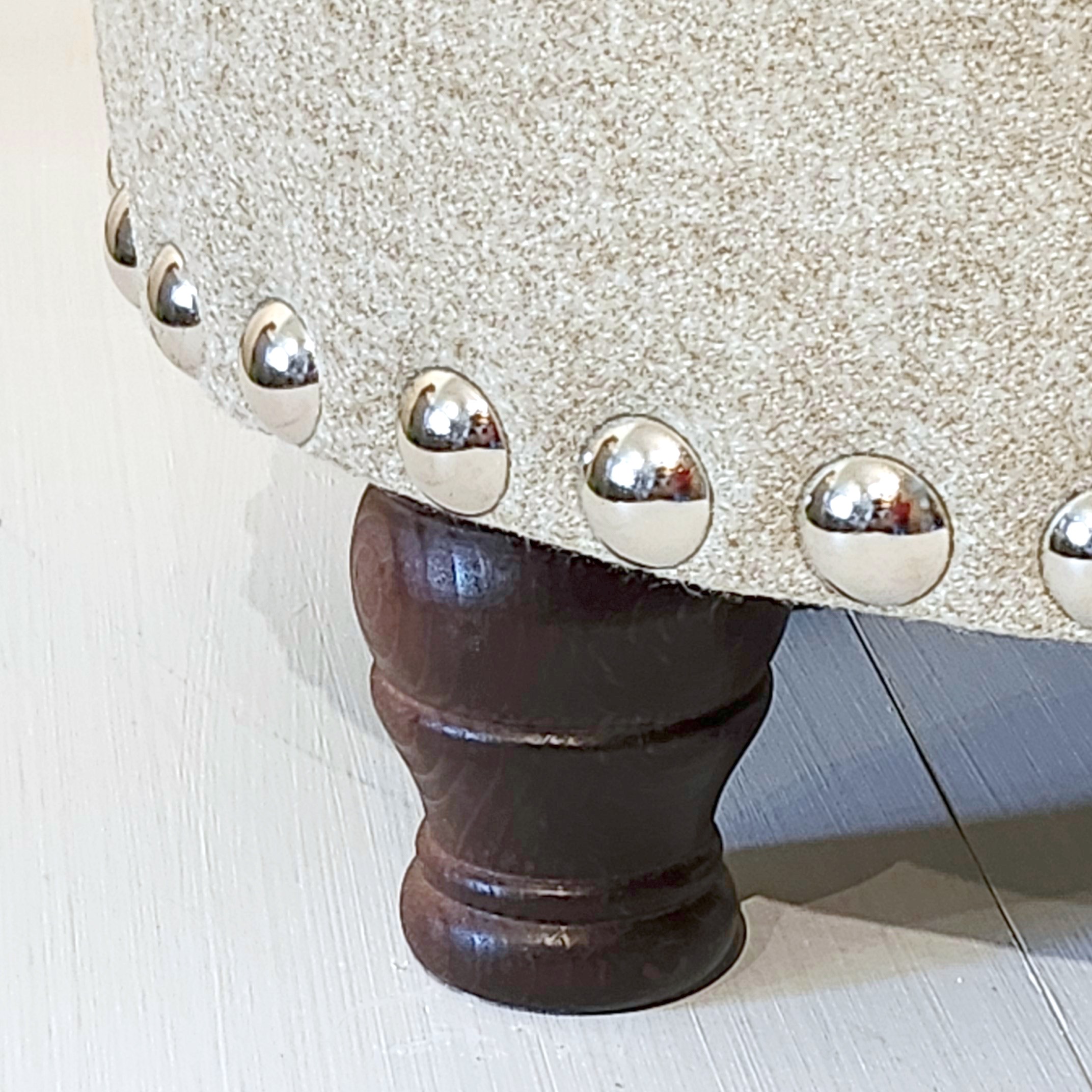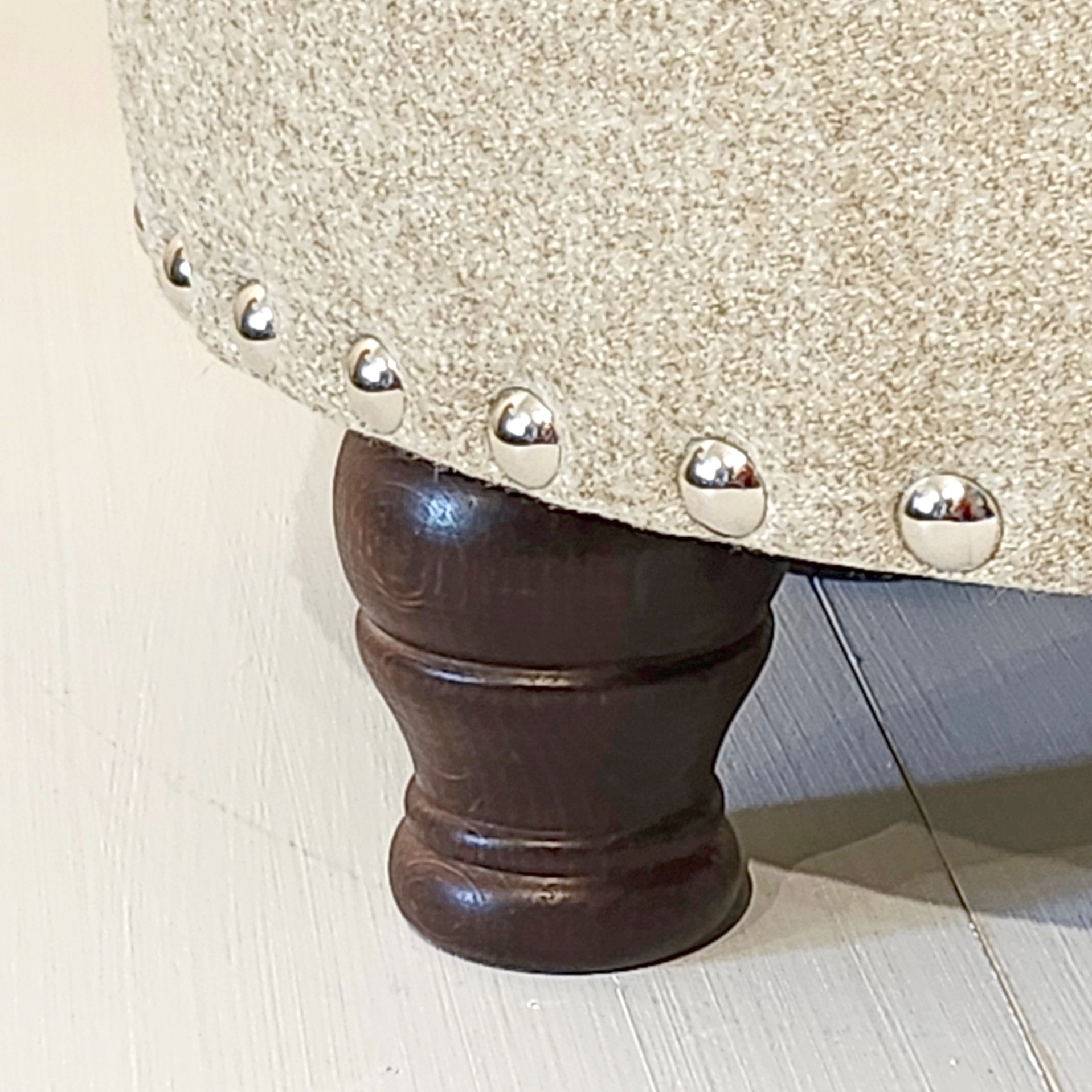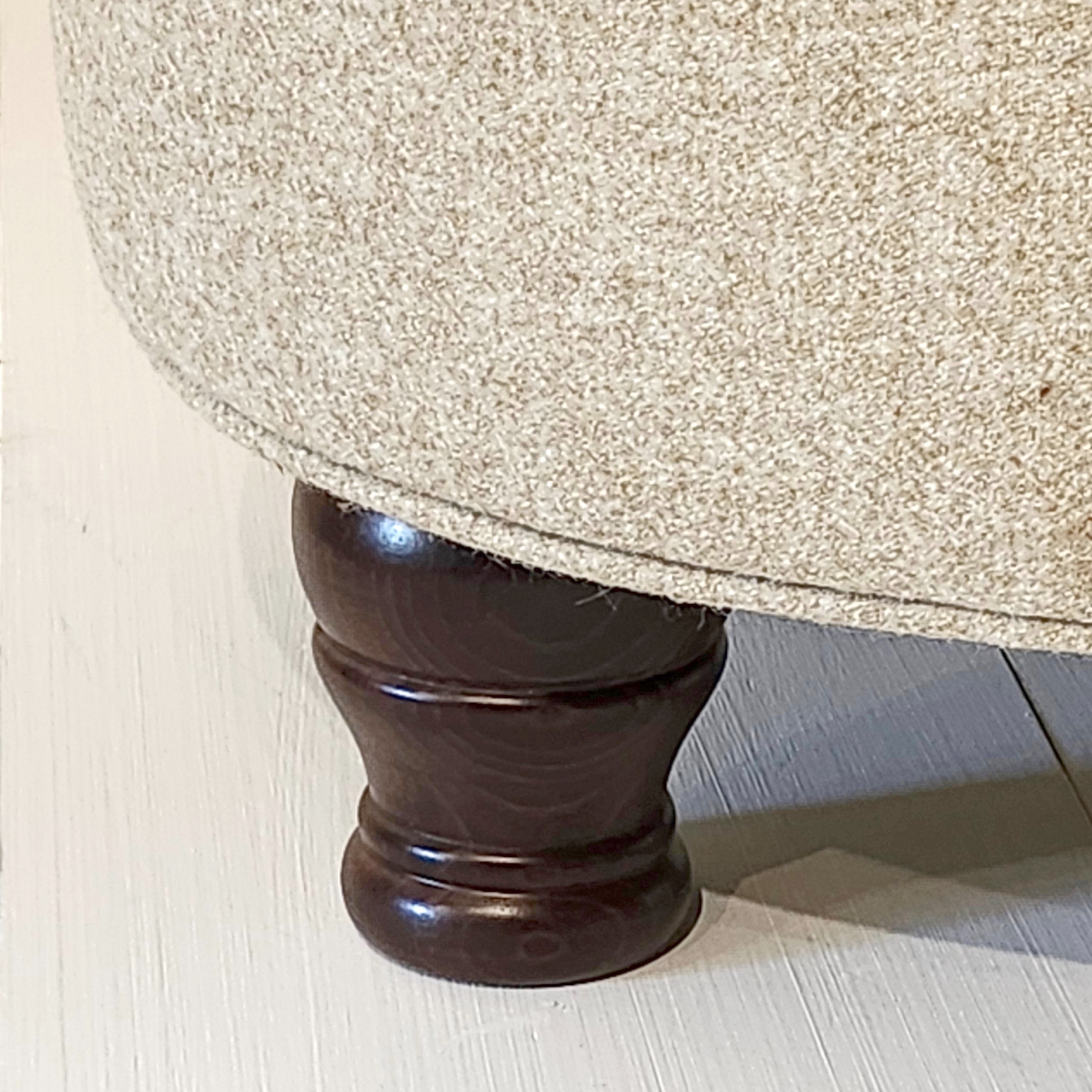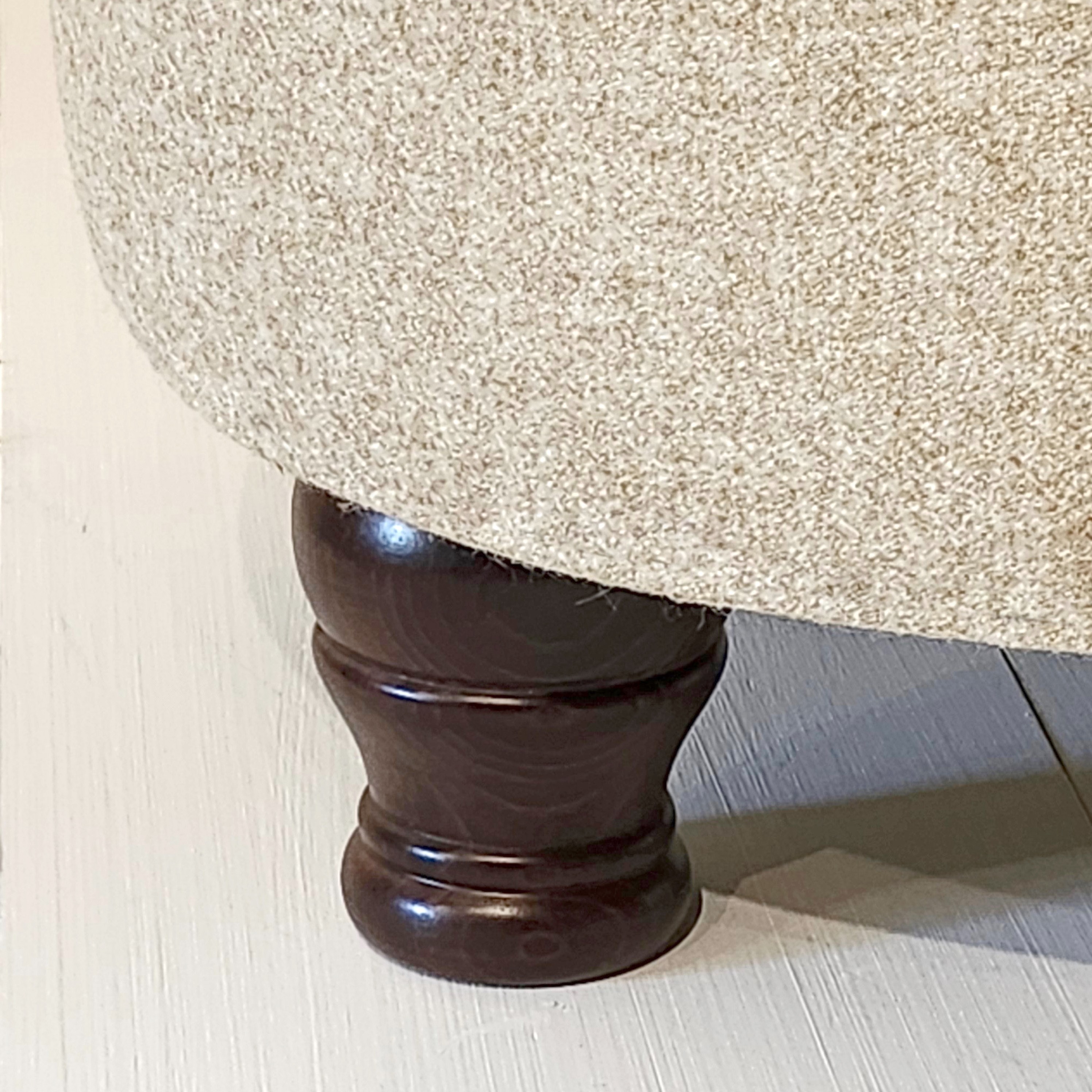 Winterfold Plain & Piped Lid Medium Depth Round Storage Footstool 51cm (20") Faux Wool Grey - 12.7cm (5") Turned Leg Mahogany