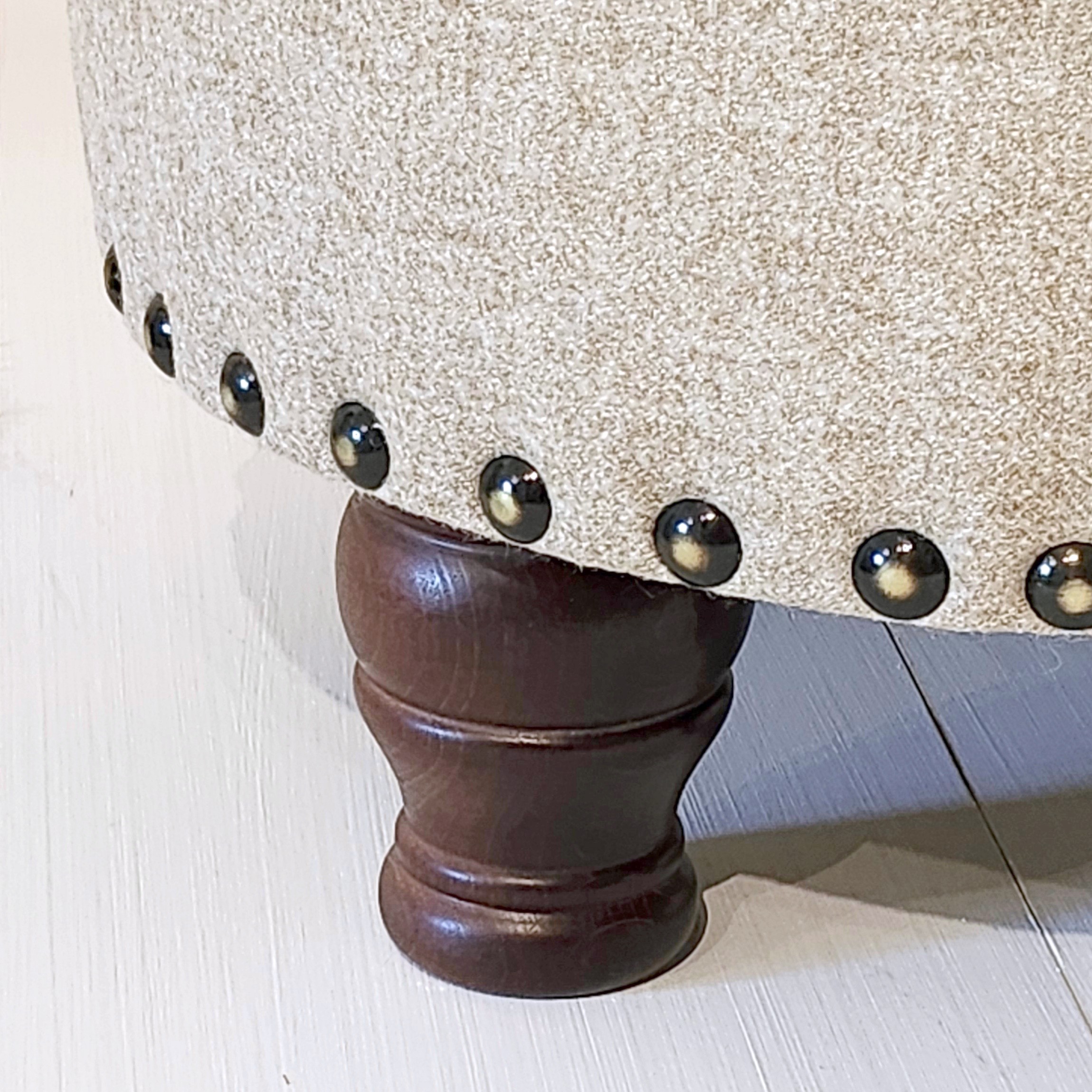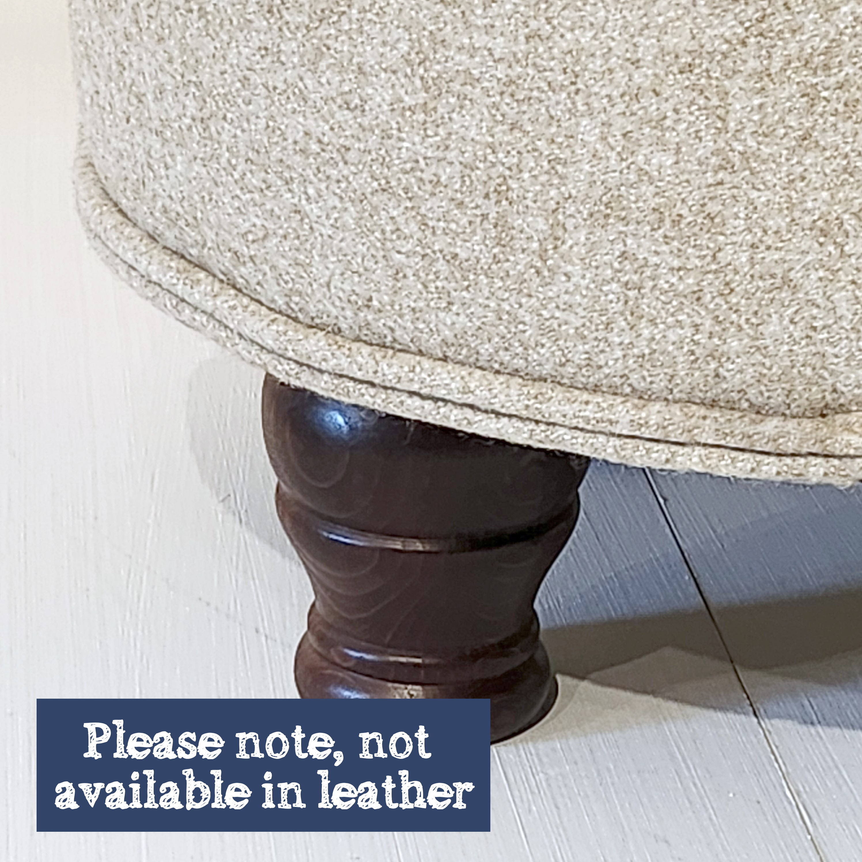This footstool features a plain top and a fully removable, piped lid, with a black internal lining cloth. Wooden legs are made from either beech or oak.
